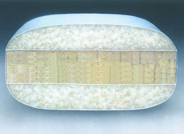 Dit hoofdkussen bestaat uit een zachte middenkern van schuimrubber die zorgt voor de stevigheid, de buitenste laag bestaat uit 90% ganzendons die zorgt voor een zachte bovenlaag, door deze combinatie van schuimrubber en dons is het een zacht kussen met behoud van vorm. Goed ventilerend, goede vochtopname, wasbaar, niet-navulbaar.